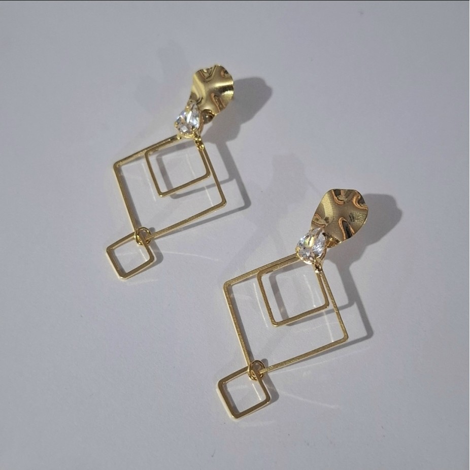 Brinco com Quadrados Vazados e Pedra - Folheado a ouro 18k