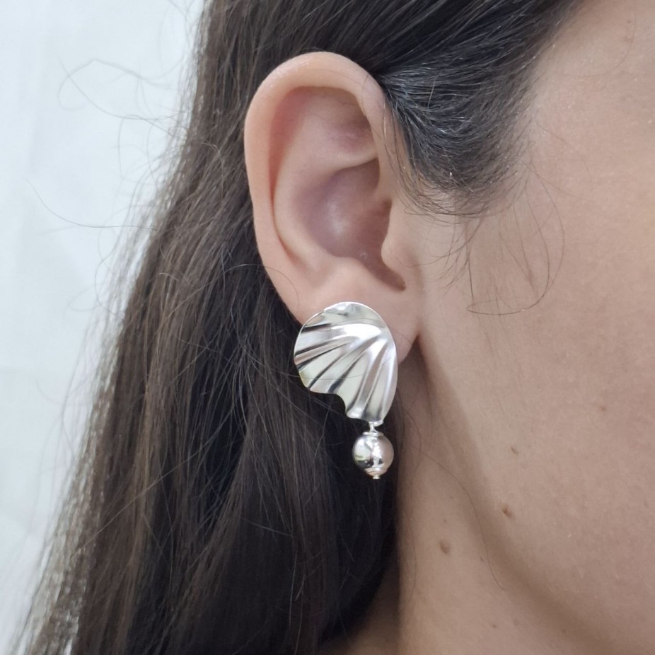 Brinco com Textura e Bolinha - Folheado a Prata