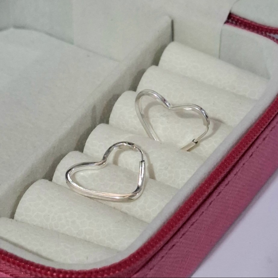Brinco de Coração Articulado Vazado Liso - Prata 925