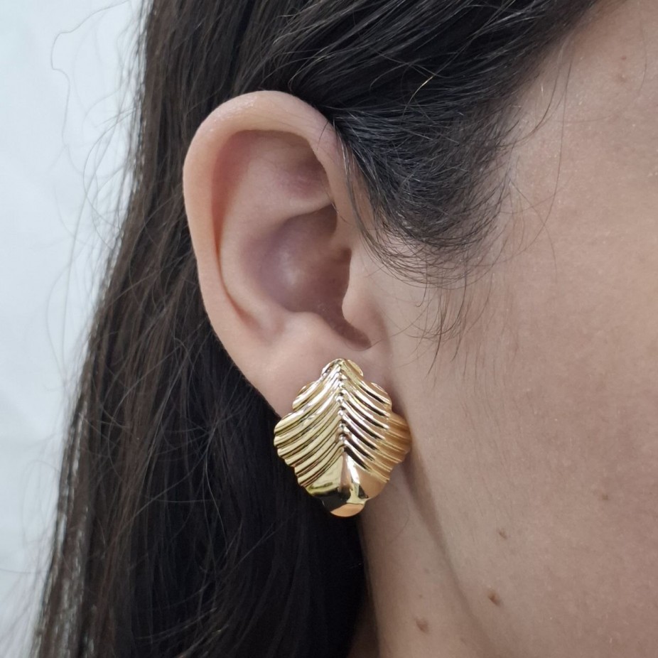 Brinco de Folha com Textura Formato Losangulo - Folheado a ouro 18k