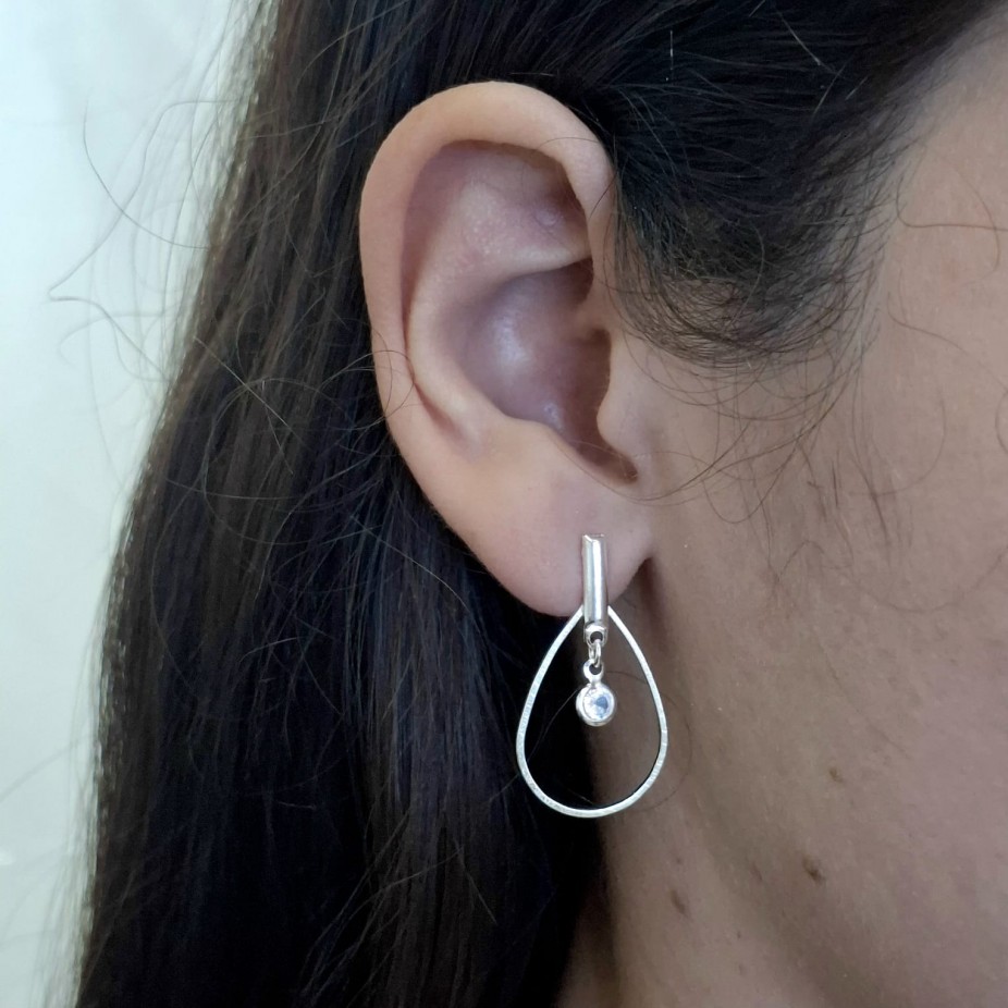Brinco em Formato de Gota com Pedra - Folheado a Prata