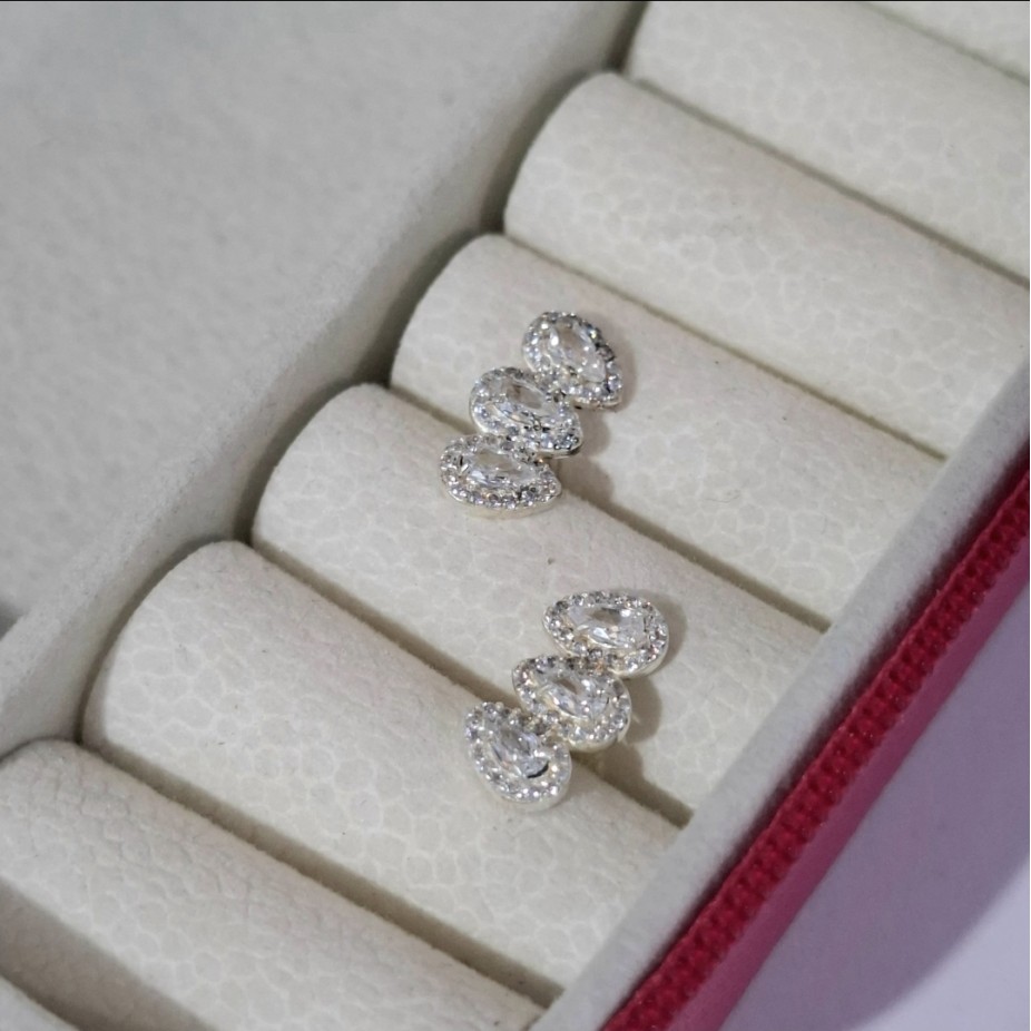 Brinco Gotas Minimalistas Cravejadas - Prata 925