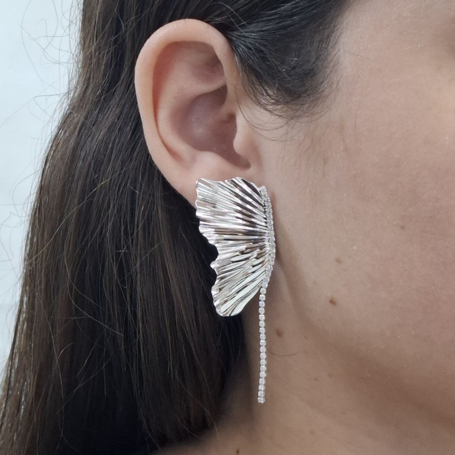 Brinco Meia Borboleta com Pedra - Folheado a Prata
