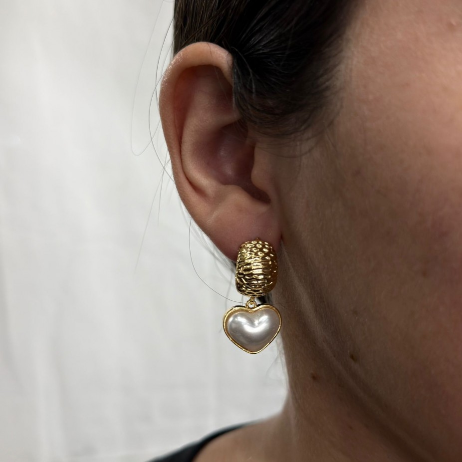 Brinco Pendurado de Coração com Pérola - Folheado a Ouro 18k