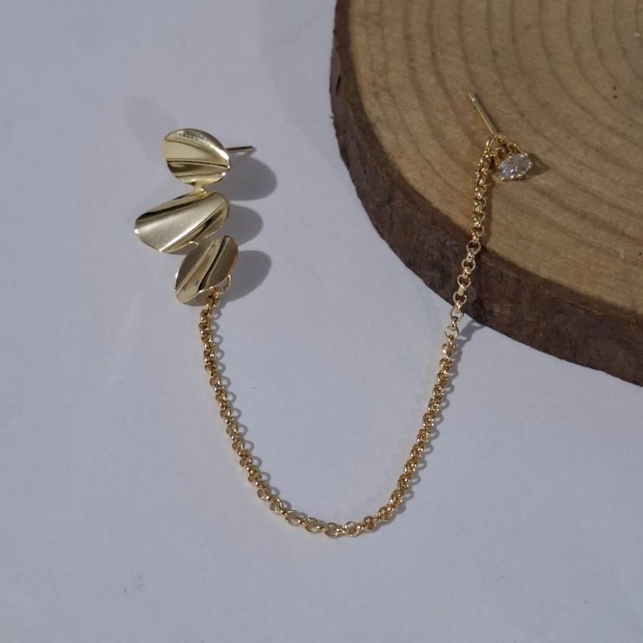 Brinco Pétala com Corrente e Mini Brinco com Zircônia - Folheado a Ouro 18k