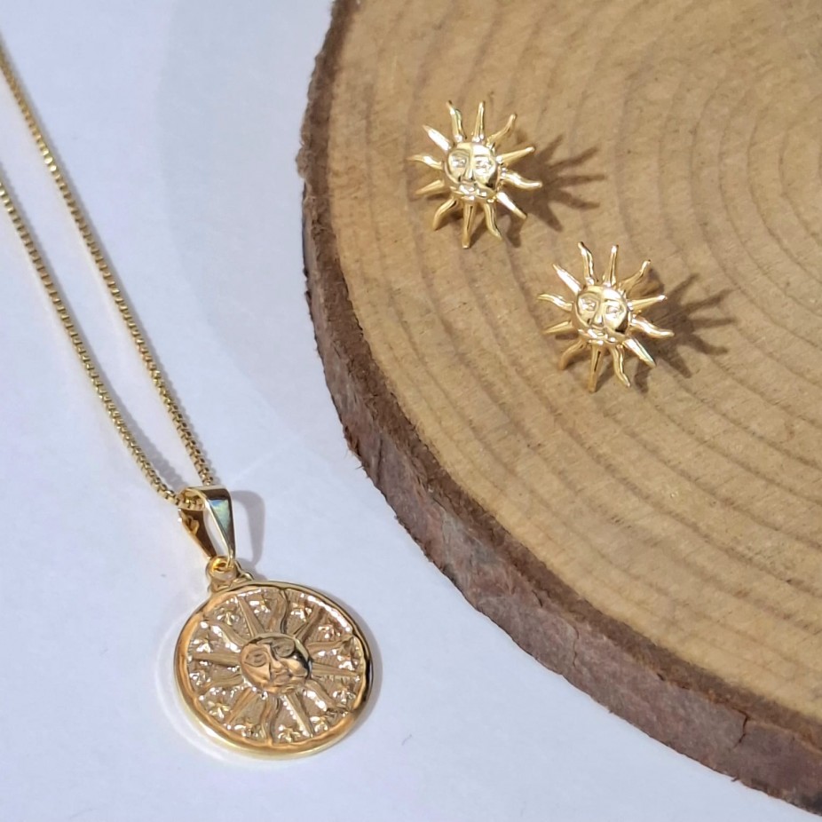 Conjunto de Borboleta com Pedras - Folheado a ouro 18k