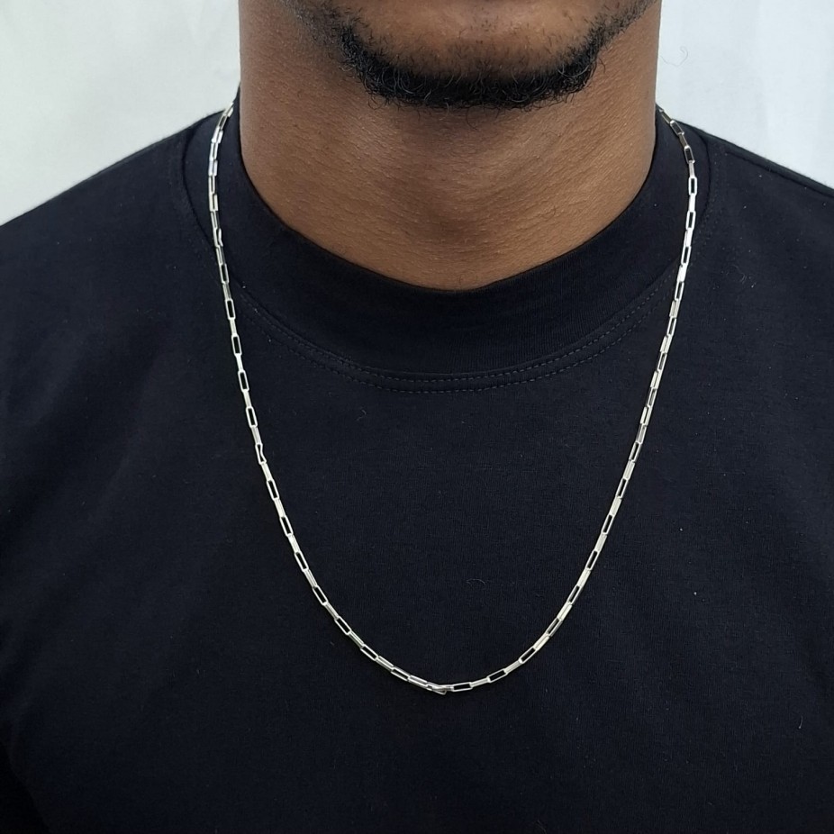 Cordão Masculino Elo Retangular G - Prata 925