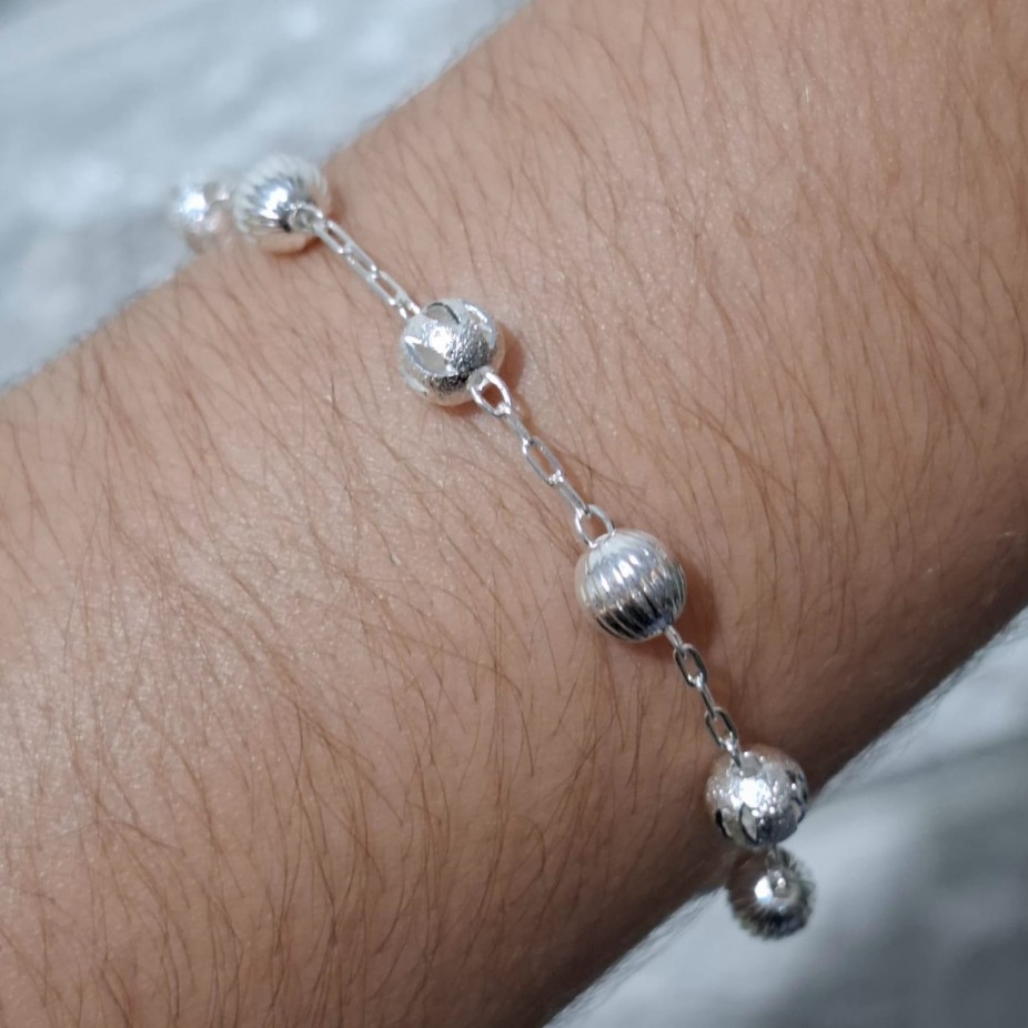 Pulseira De Bolinhas Lisas, com Brilho e Riscos Vazados G - Folheado a Prata