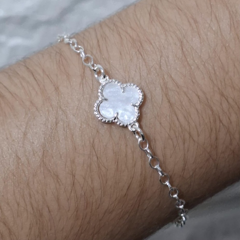 Pulseira de Trevo Branco - Folheado a Prata