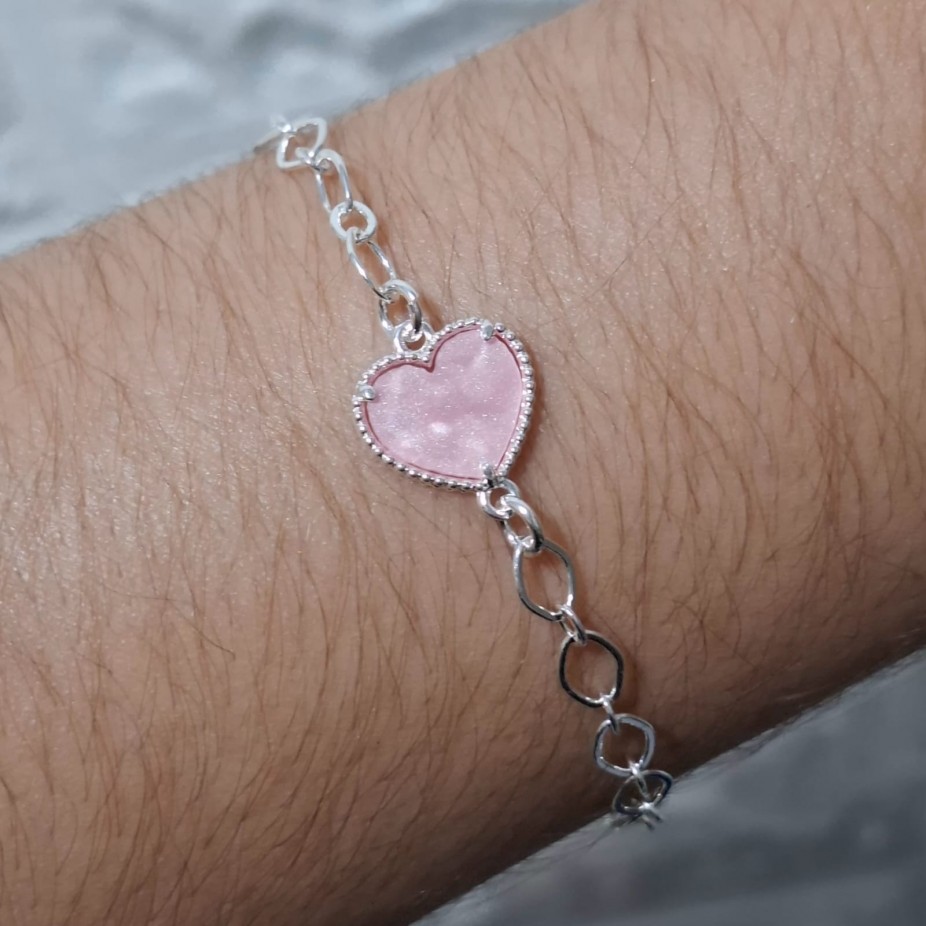 Pulseira Elo Cadeado Redondo com Pingente de Coração - Folheado a Prata