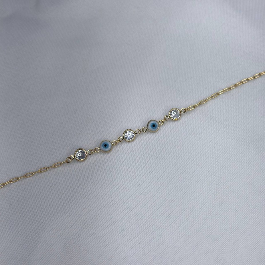 Tornozeleira com Pedra e Olho Grego - Folheado a Ouro 18k