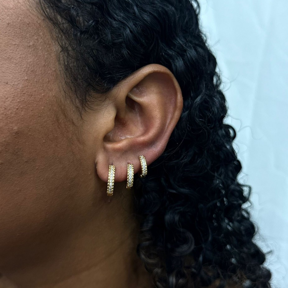 Trio de Argolas Cravejados - Folheado a Ouro 18k
