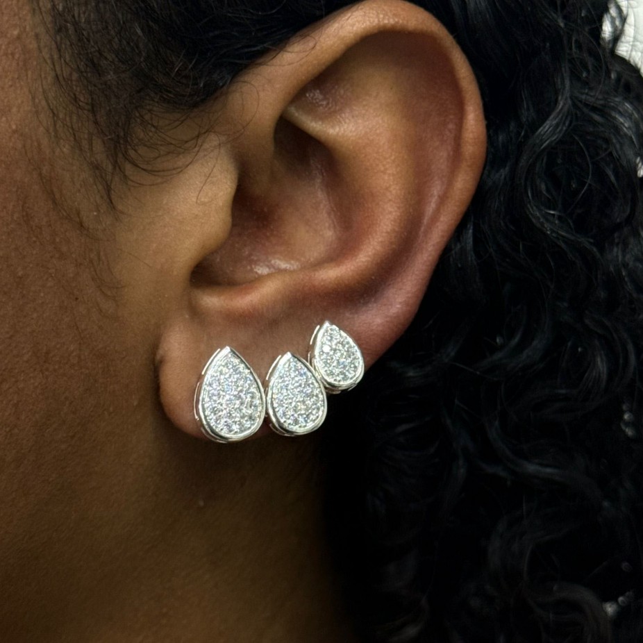 Trio de Brincos Gota Cravejada - Folheado a Prata