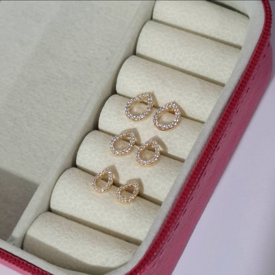 Trio de Brincos Gota Vazados - Folheado a ouro 18k